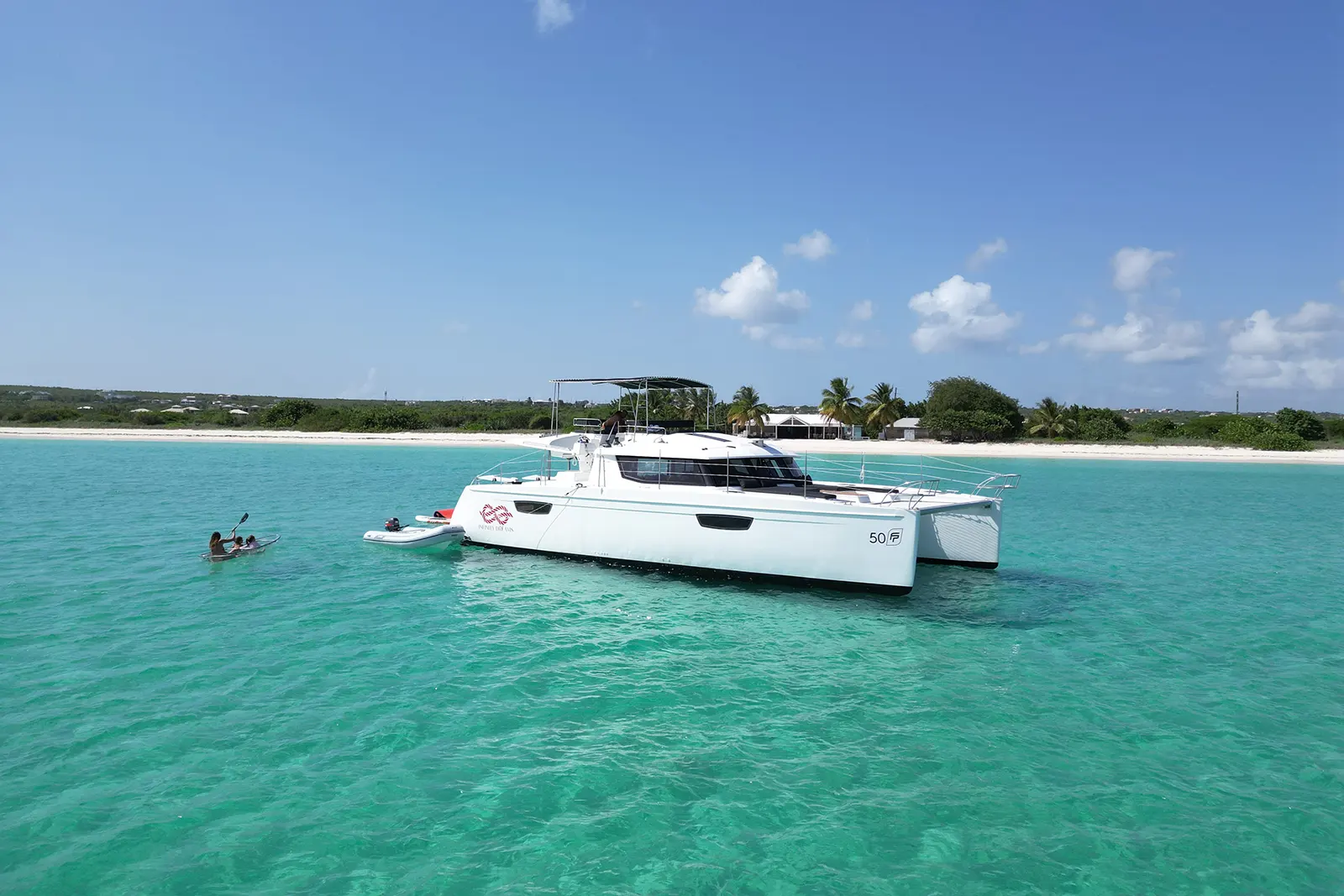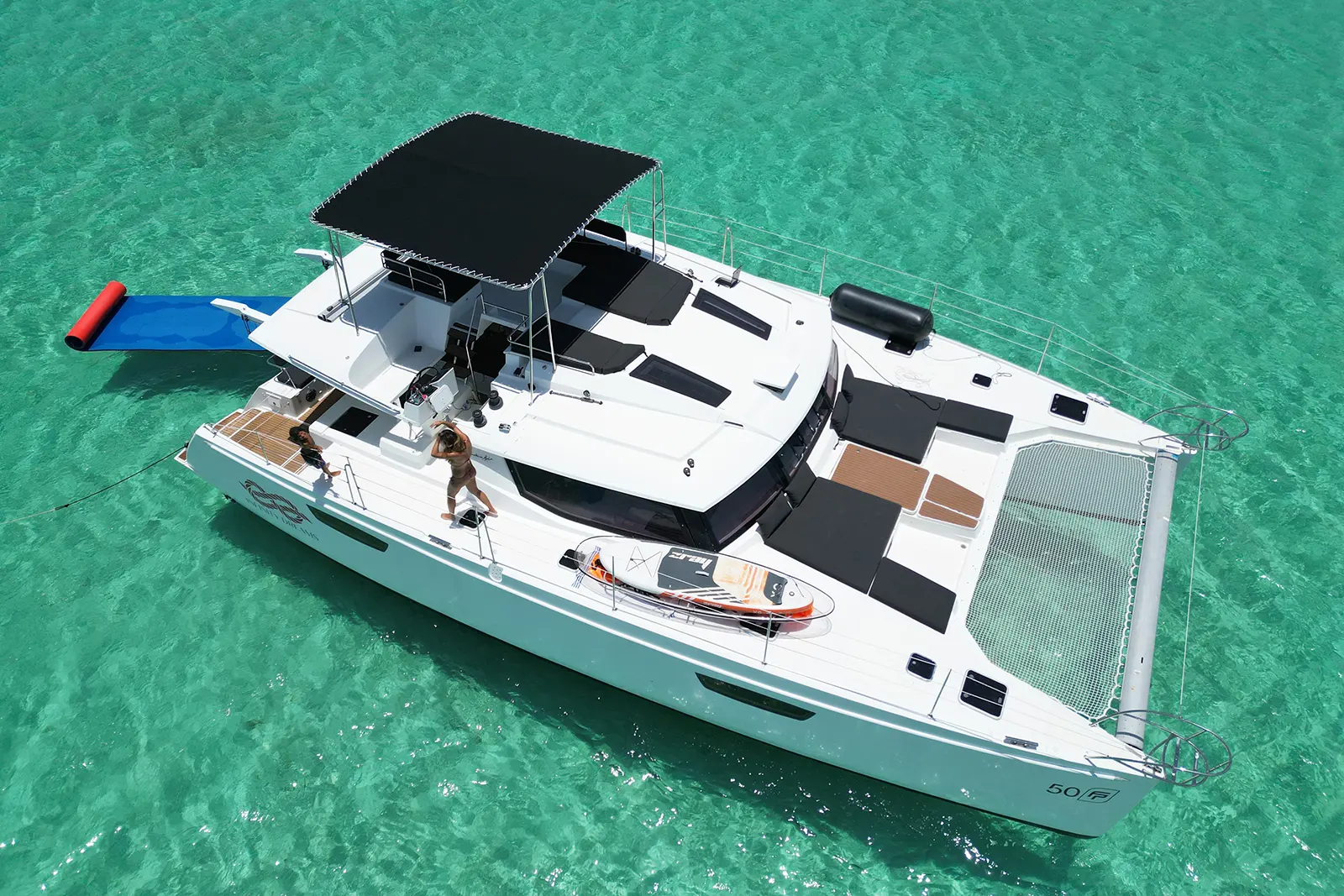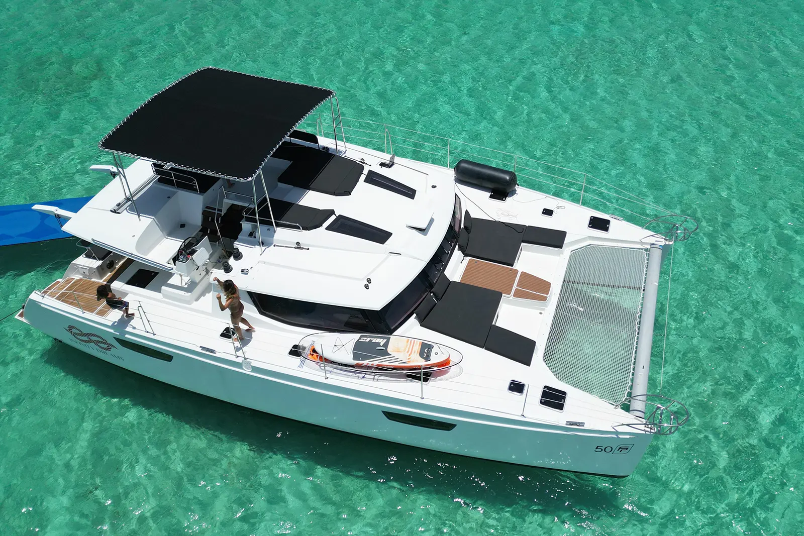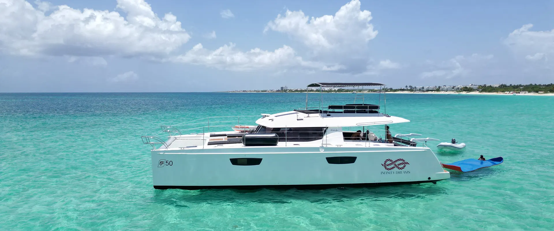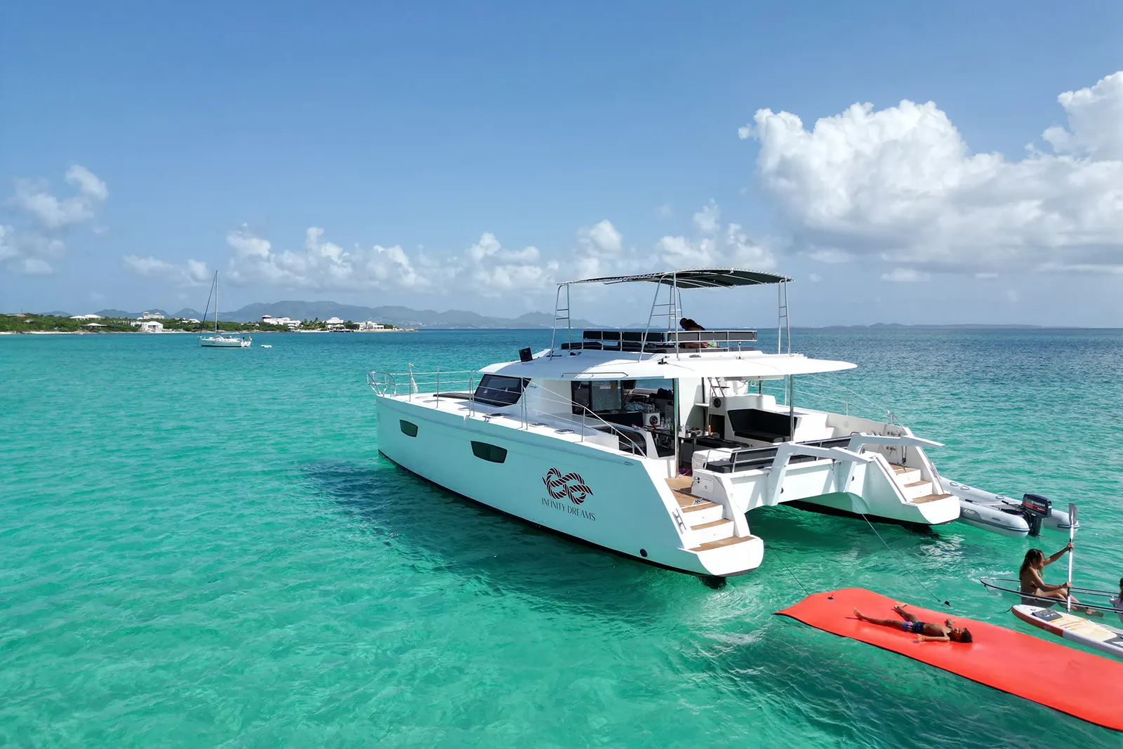 The perfect way to experience relaxation and adventure. Enjoy a day on board our Infinity Dreams 50 ft Fountain Pajot Catamaran. Fitting up to 28 people, this is the perfect Day Charter for large groups, a family with children, or just have fun with friends. The boat has lots of shade, carries a full array of water toys and offers full service – offering guests that ultimate dream day onboard!