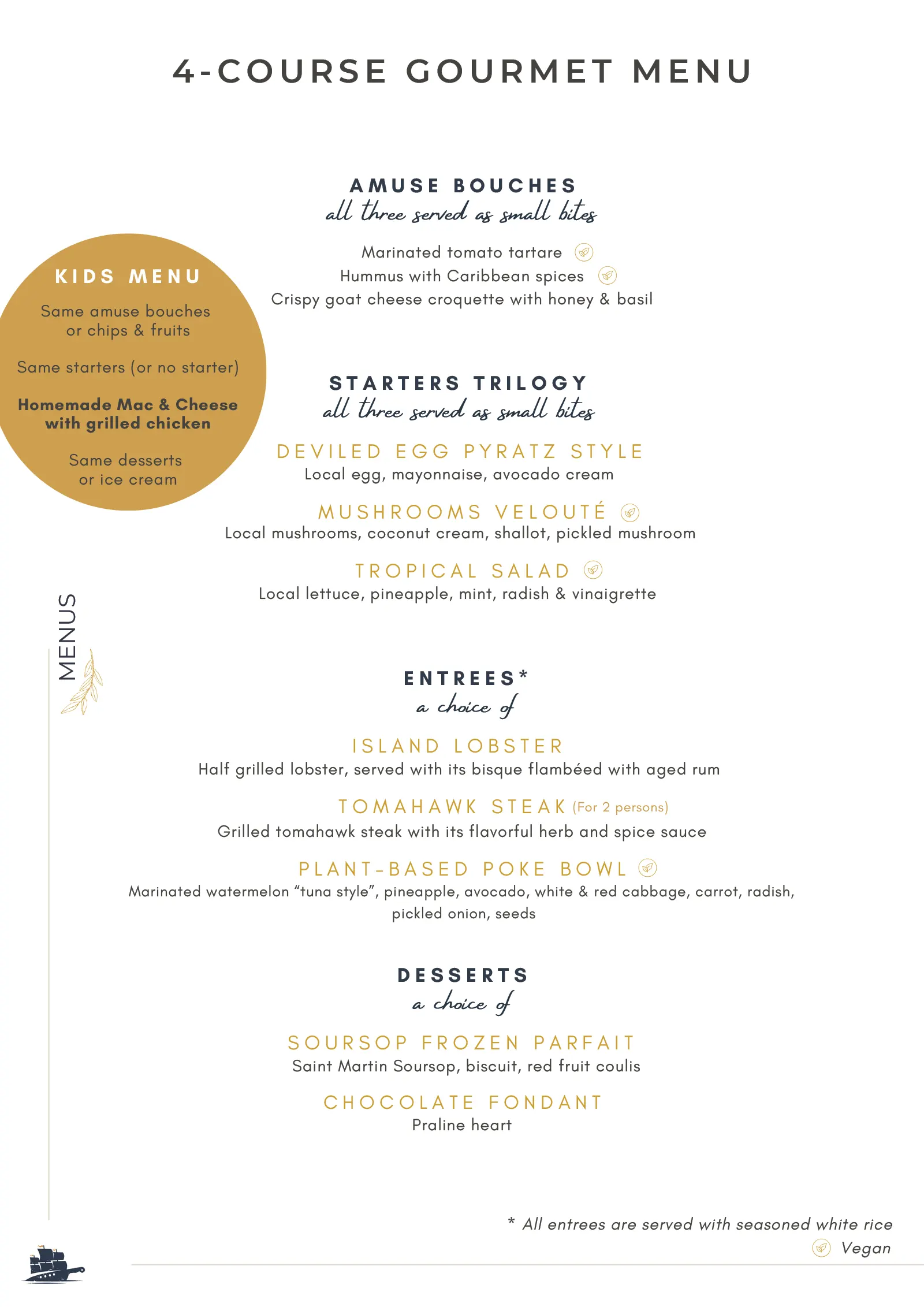 Gourmet Menu 2026 | Food & Drinks served during this unique charter: