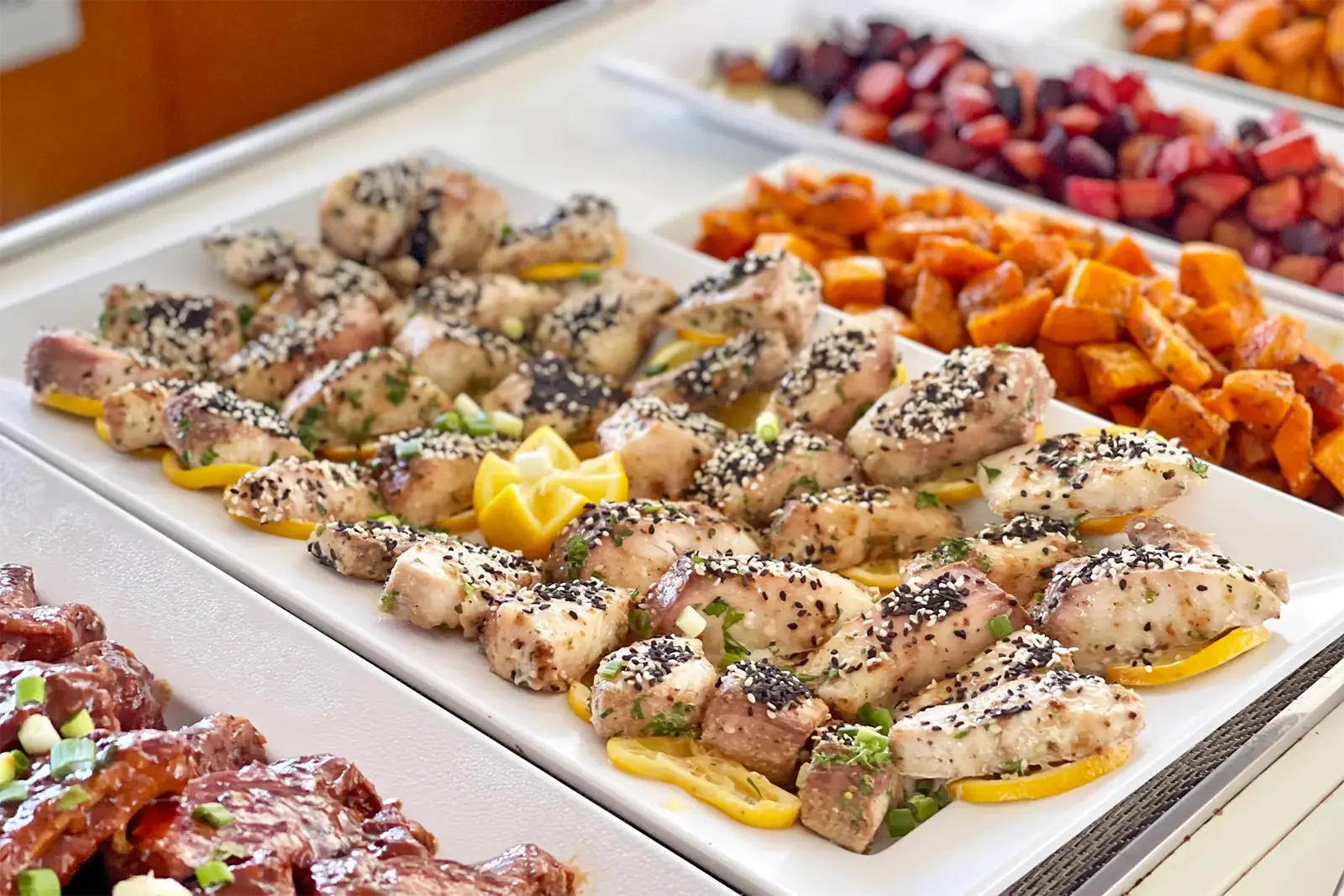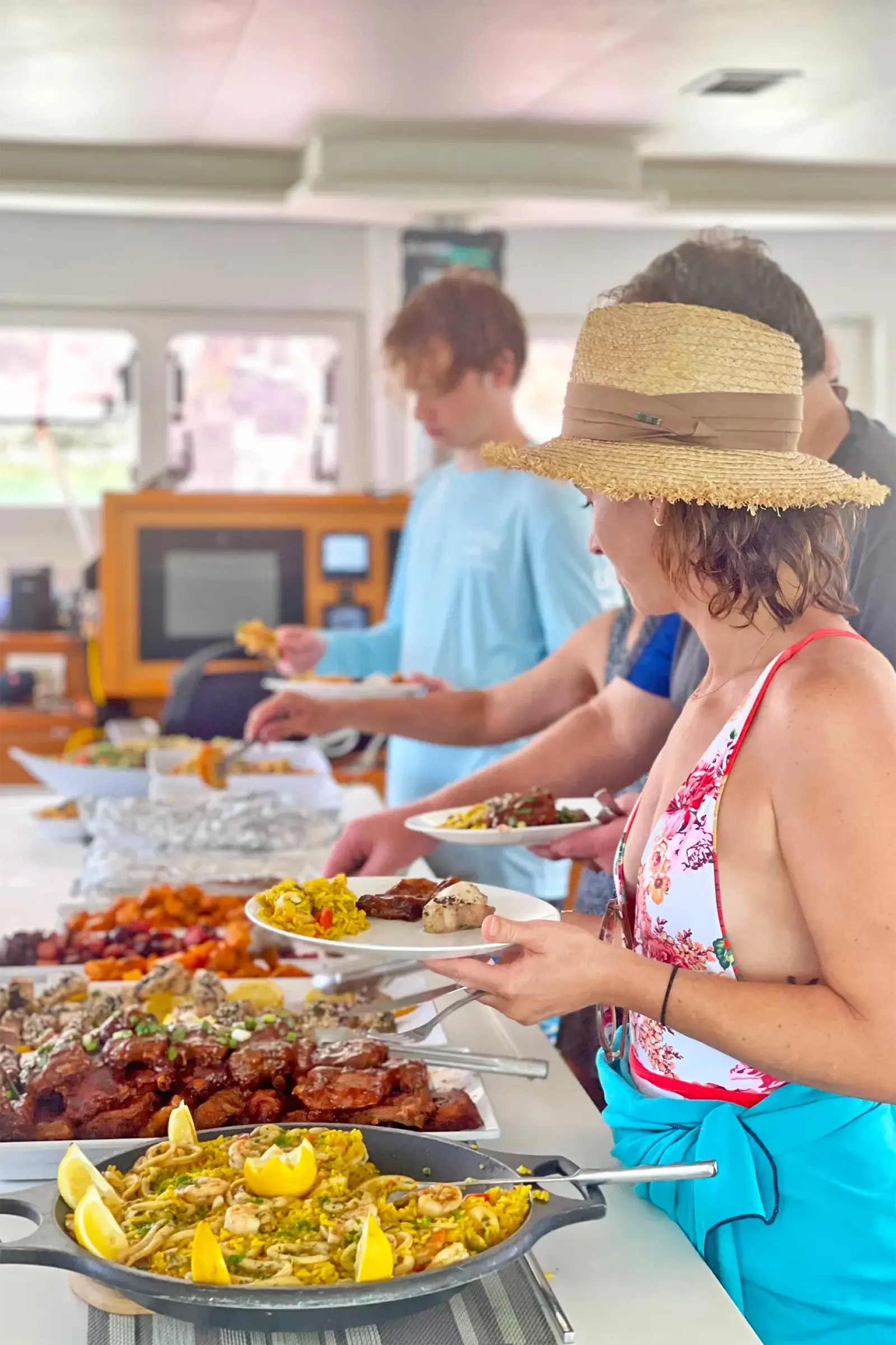 Your catamaran charter with lunch includes Neil’s famous all-you-can-eat buffet, a highlight for returning guests year after year. Designed to cater to every dietary preference—vegan, vegetarian, gluten-free, and no pork—it’s a gourmet spread on the sea:
