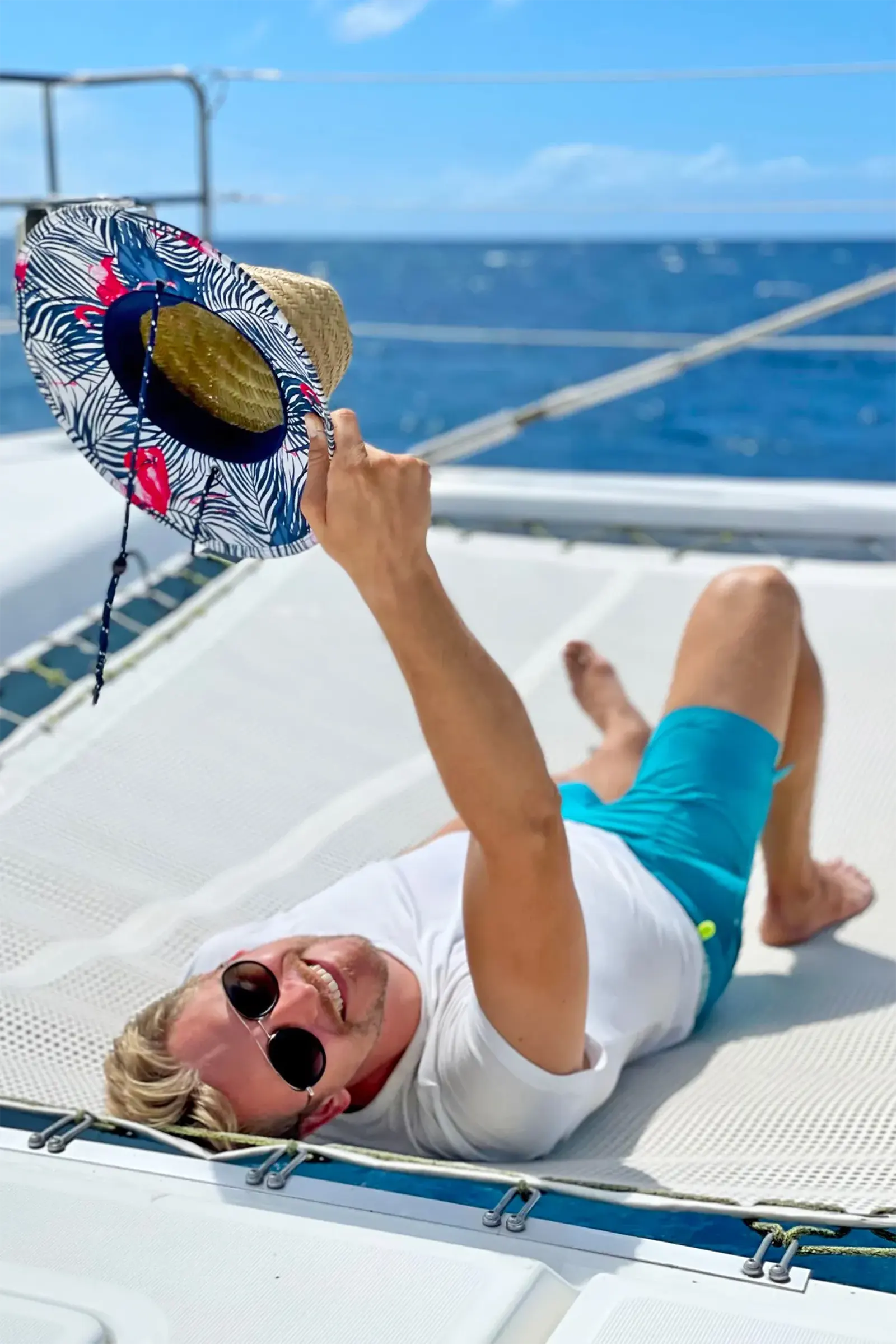- Ample lounging areas: front trampolines, shaded lunch area, upper deck with cozy seating, and a sunny top deck