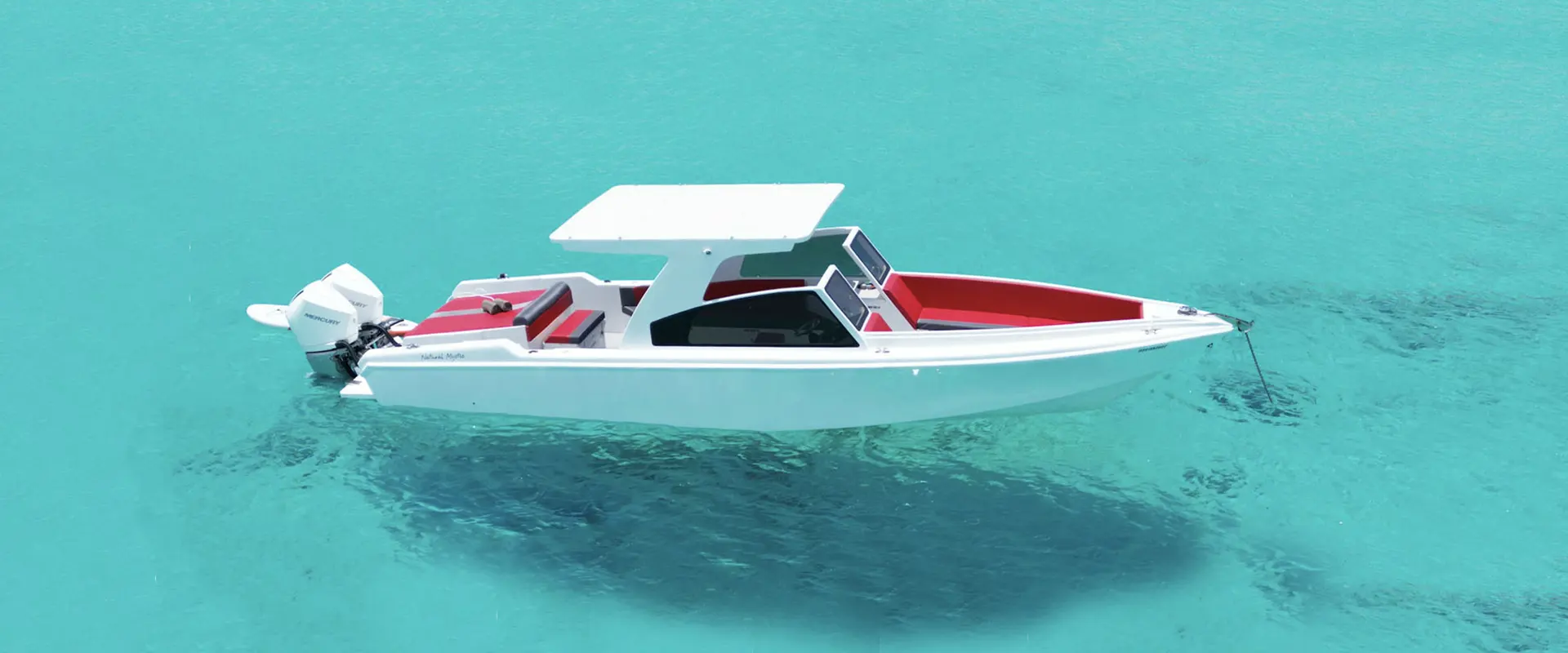 Natural Mystic has 2 powerful 300hp Mercury V8 engines for a powerful and efficient ride, ideal for exploring islands comfortably.