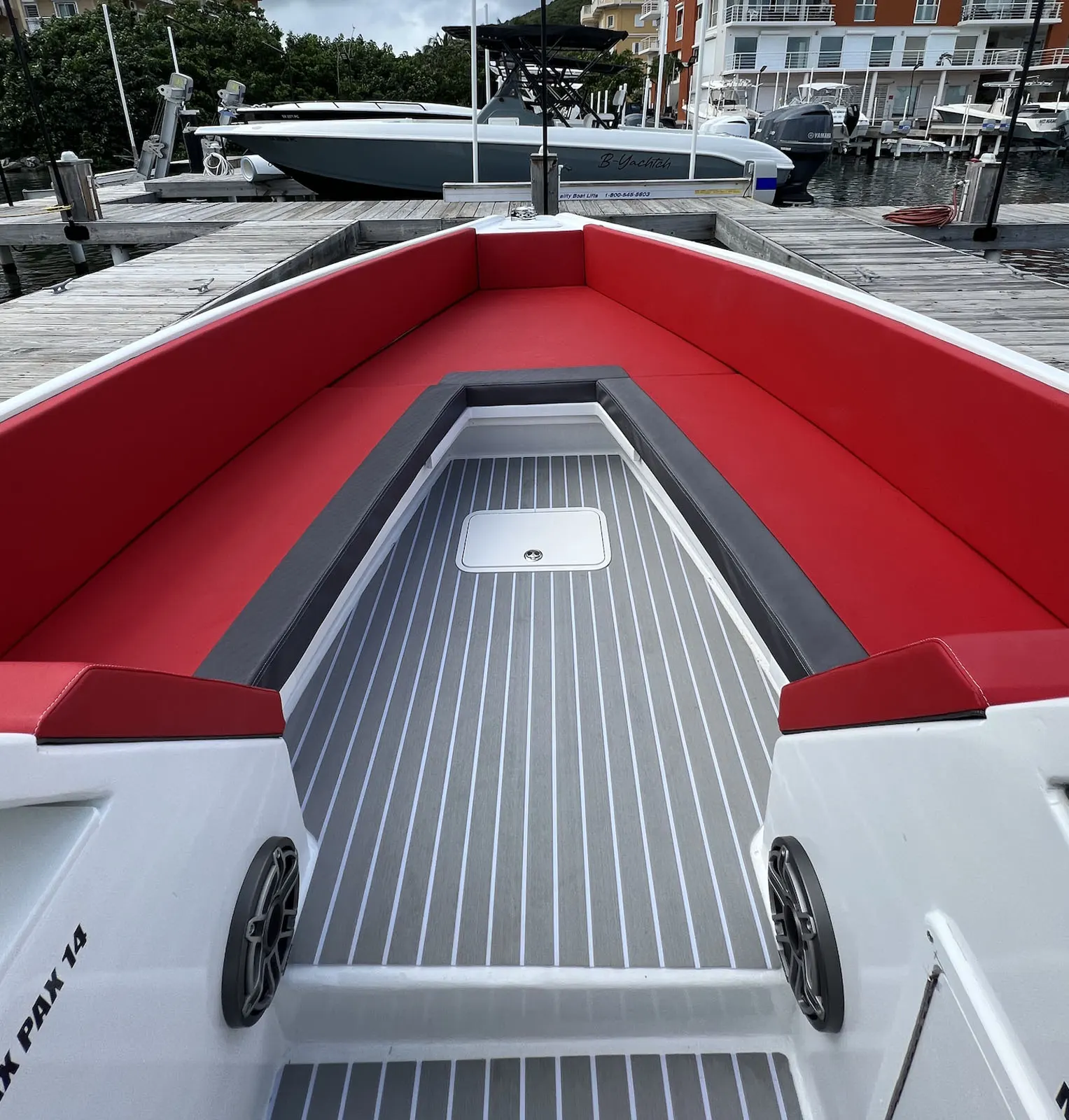 This Anguillan 37FT Rebel powerboat was entirely redesigned, with high-quality materials; its interior floor plan is perfectly conceived for a family with children, or a trip with friends.