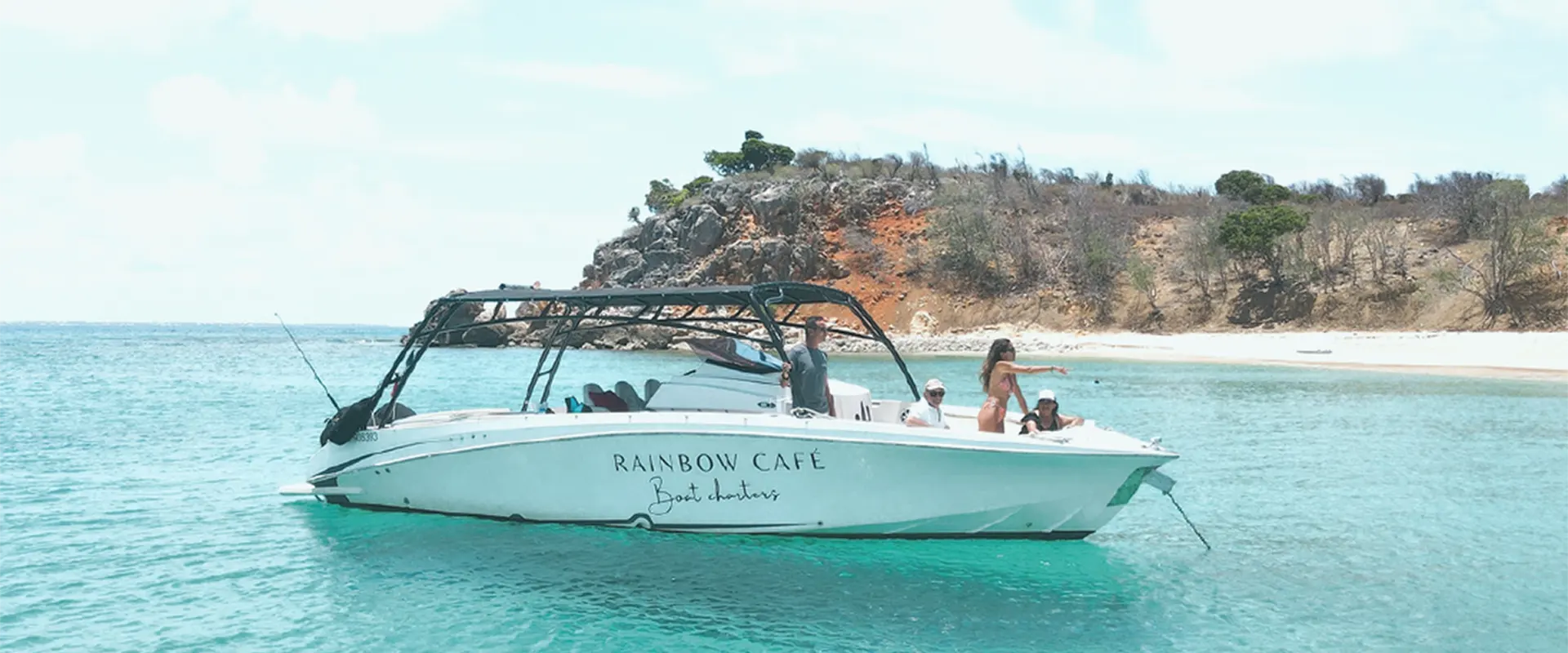 Charter a boat around St. Martin including Lunch at Rainbow Café