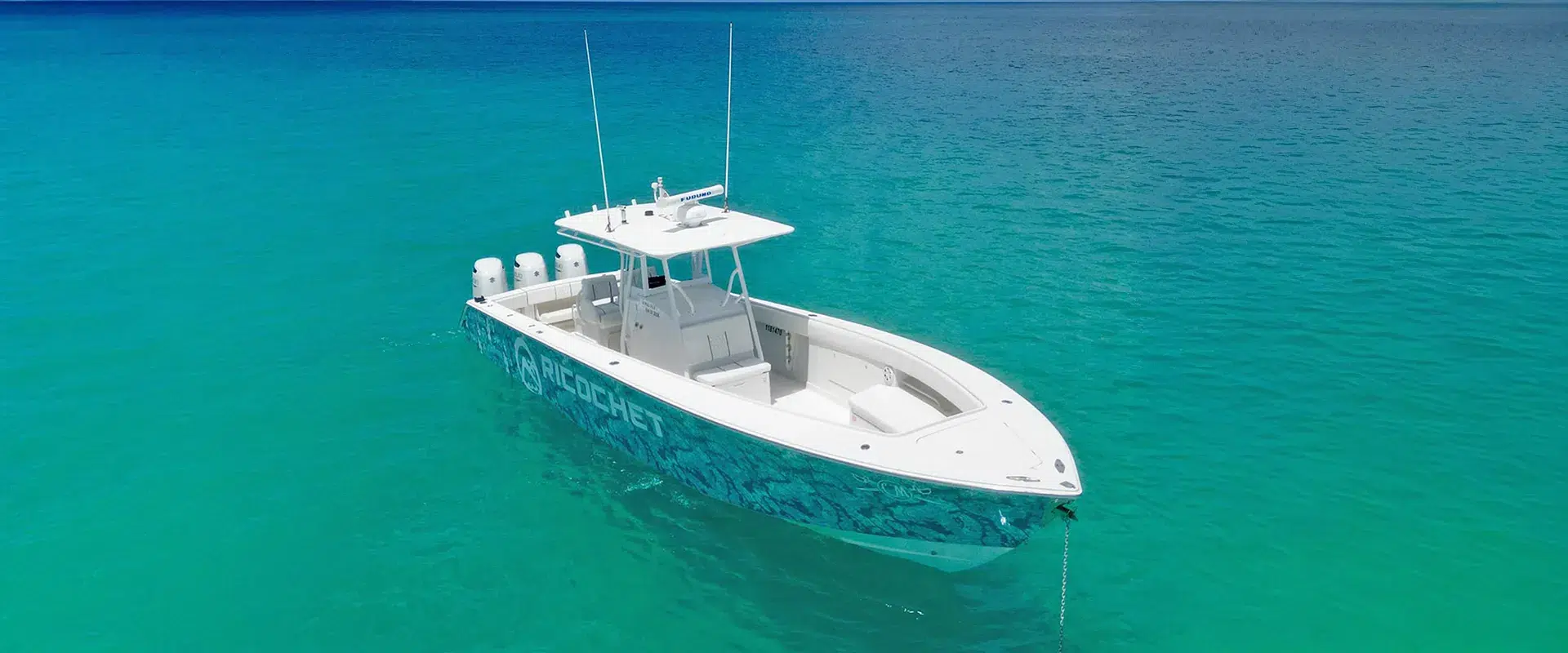 Experience the thrill of Ricochet, a 38-foot power boat featuring three 300HP Suzuki engines, a top-notch sound system, and an onboard restroom. Enjoy comfort with cushioned seating in front and back, plus a shaded lounging area with a removable awning. Ricochet offers three exclusive locations for private charters, ensuring a personalized and unforgettable voyage. Choose Ricochet for a seamless blend of style and versatility on the water.
