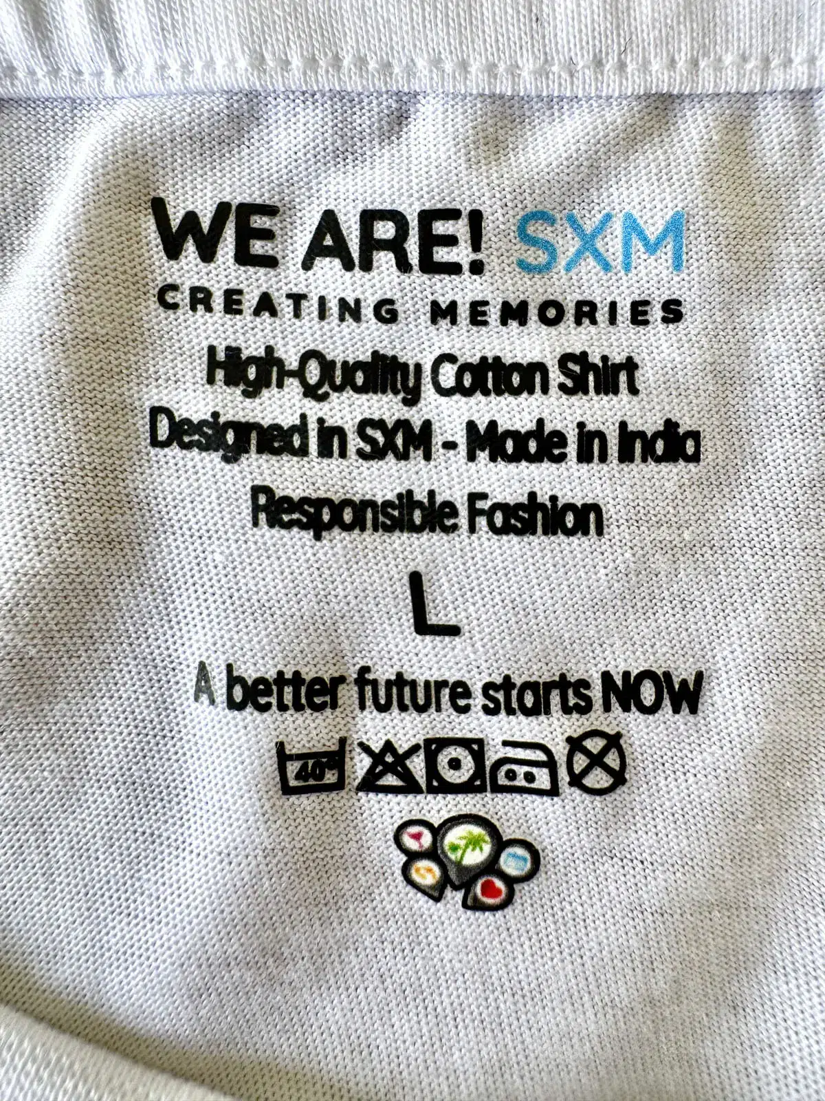 "Designed in St. Martin | St. Maarten together with local artist ESPA and crafted in India from premium cotton, our T-shirts blend island creativity with responsible, high-quality fashion."